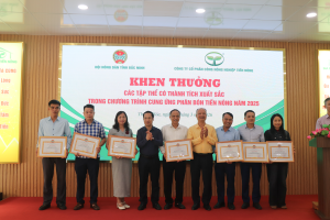 Lãnh đạo Trung ương Hội Nông dân Việt Nam; Hội Nông dân tỉnh Bắc Ninh cùng lãnh đạo công ty Tiến Nông trao bằng khen cho các tập thể, cá nhân xuất sắc năm 2025.